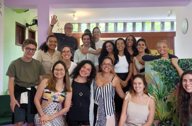 Além dos atendimentos presenciais, também conduzo constelações online, em qualquer lugar do mundo. O processo pode acontecer de forma individual — com bonecos, constelação na água, âncoras — ou em grupo, com representantes
